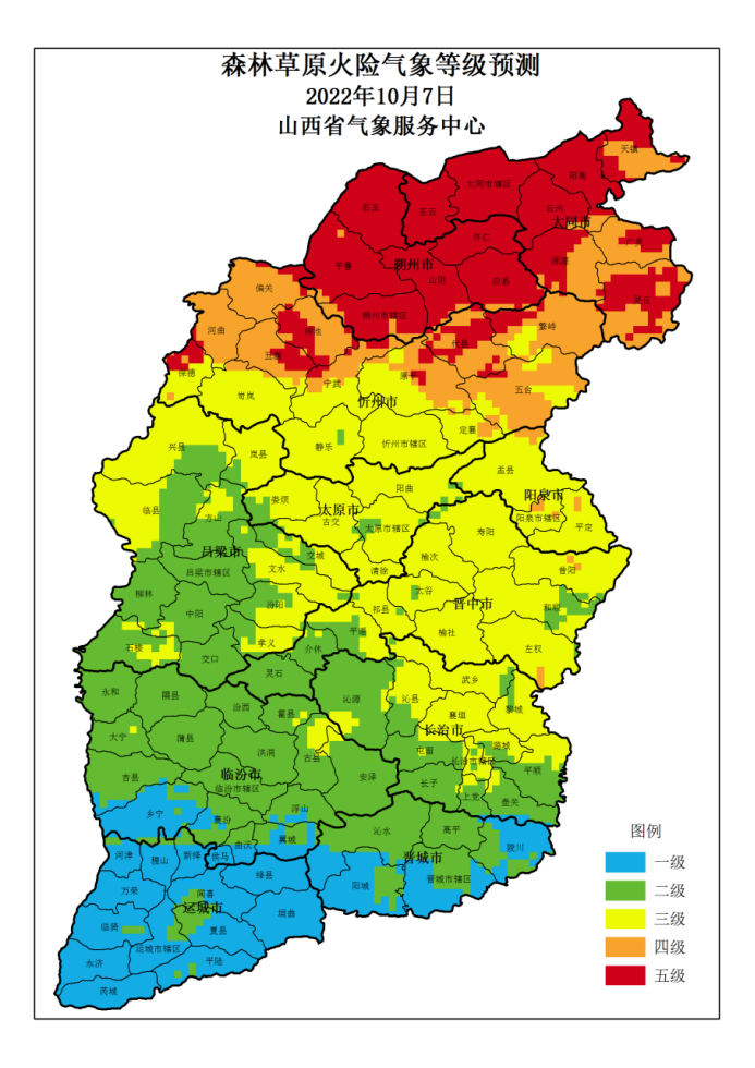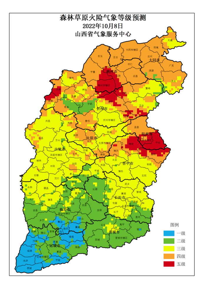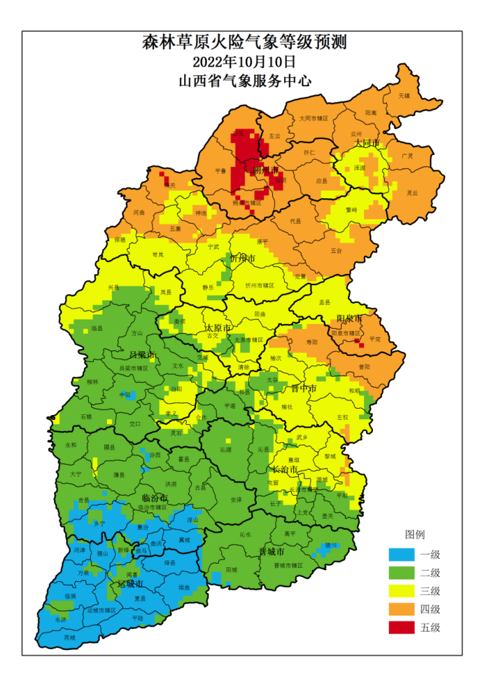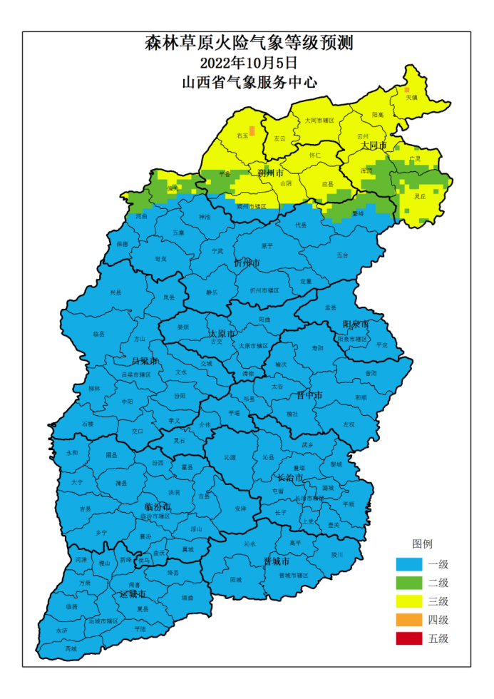 附: 山西省 2022年10月5日森林草原火险气象等级预测图
