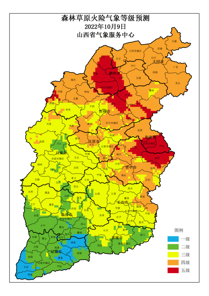 山西省 2022年10月9日森林草原火险气象等级预测图