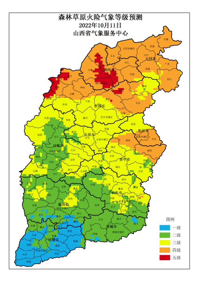 山西省 2022年10月11日森林草原火险气象等级预测图