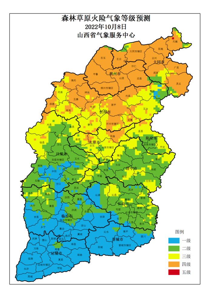 附: 山西省 2022年10月8日森林草原火险气象等级预测图