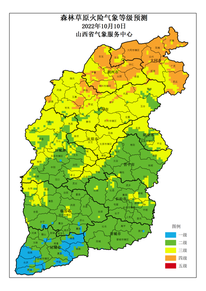 山西省 2022年10月10日森林草原火险气象等级预测图