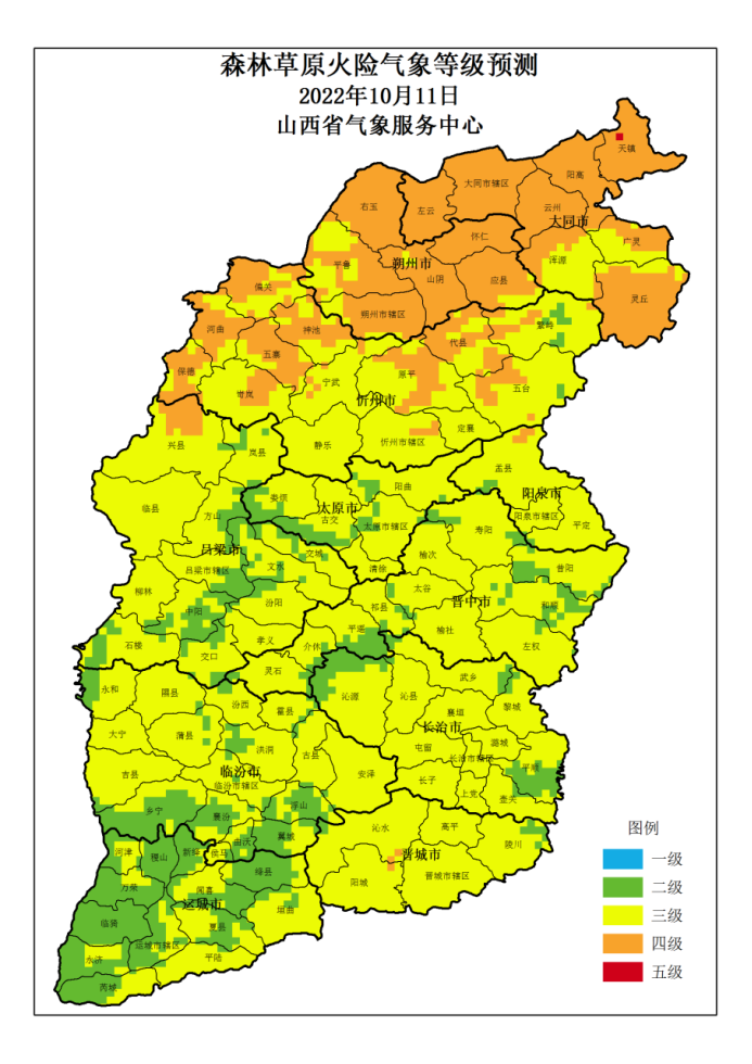 山西省 2022年10月11日森林草原火险气象等级预测图