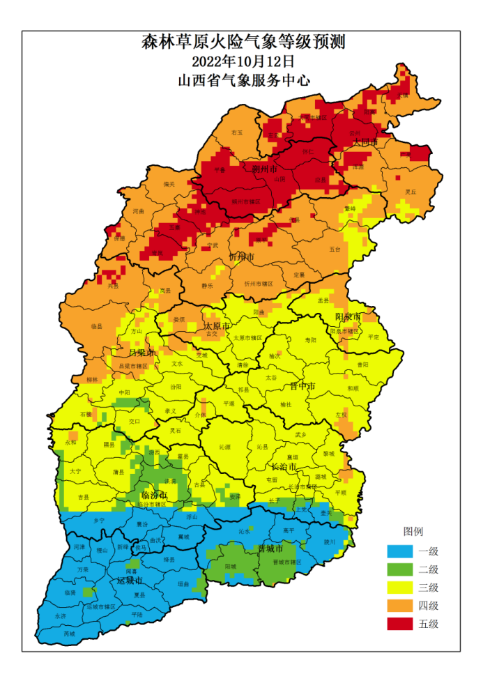山西省 2022年10月12日森林草原火险气象等级预测图