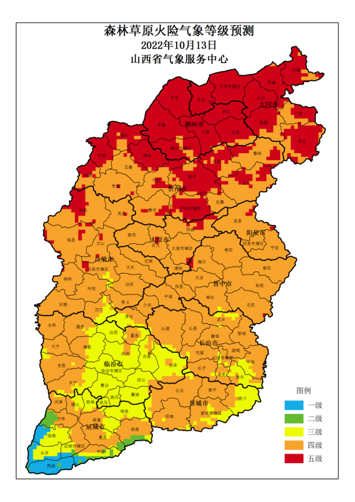山西省 2022年10月13日森林草原火险气象等级预测图