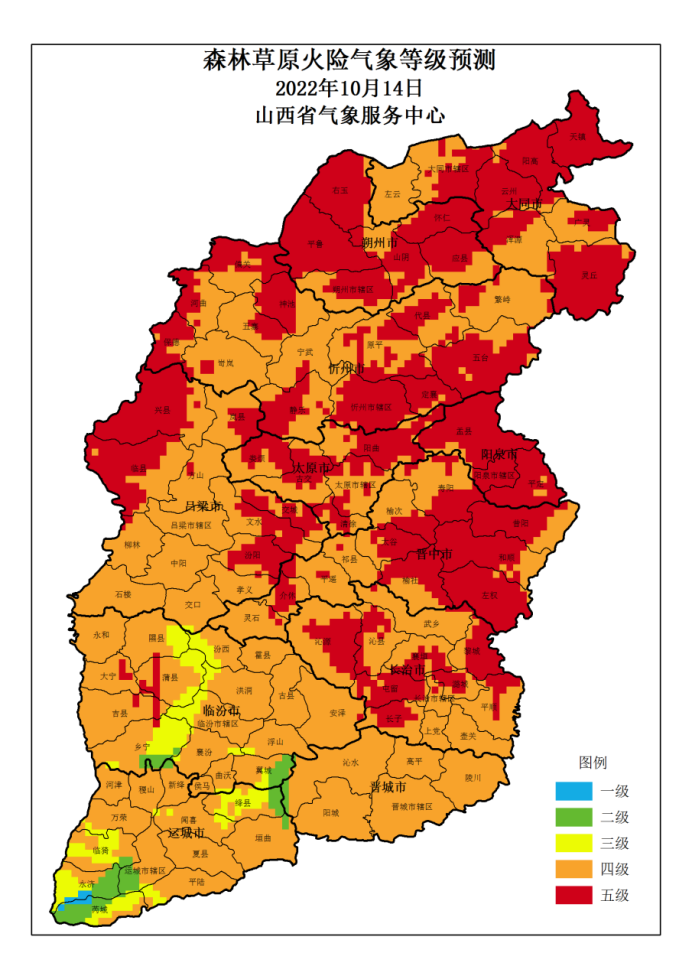 山西省 2022年10月14日森林草原火险气象等级预测图