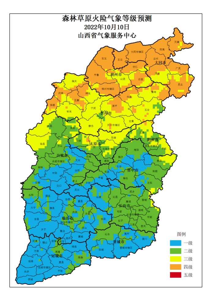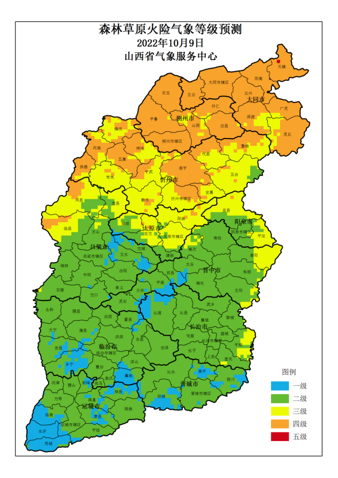 附: 山西省 2022年10月9日森林草原火险气象等级预测图