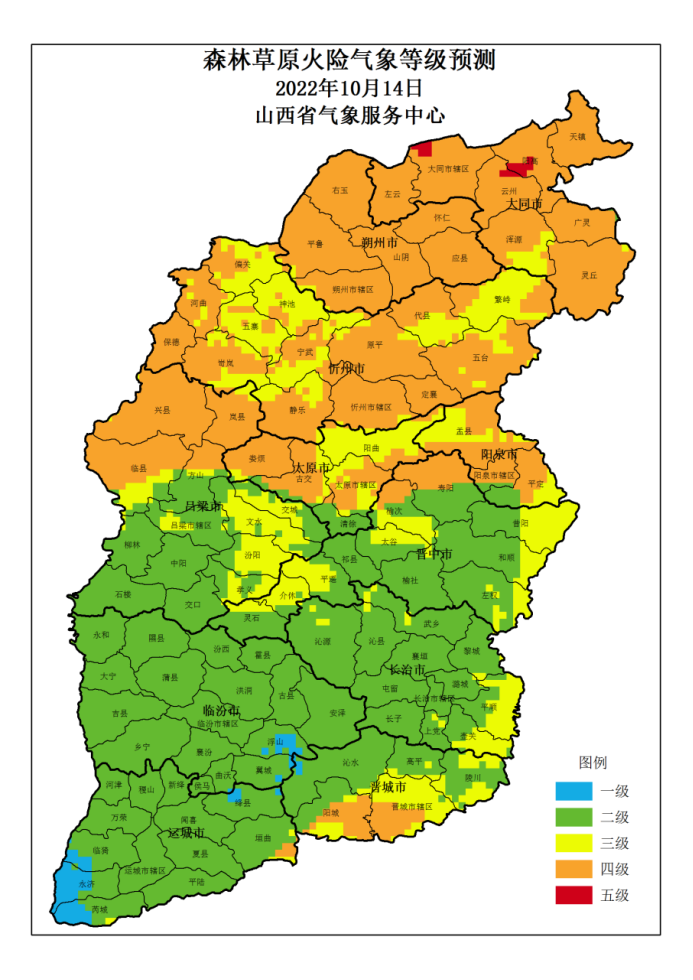 山西省 2022年10月14日森林草原火险气象等级预测图