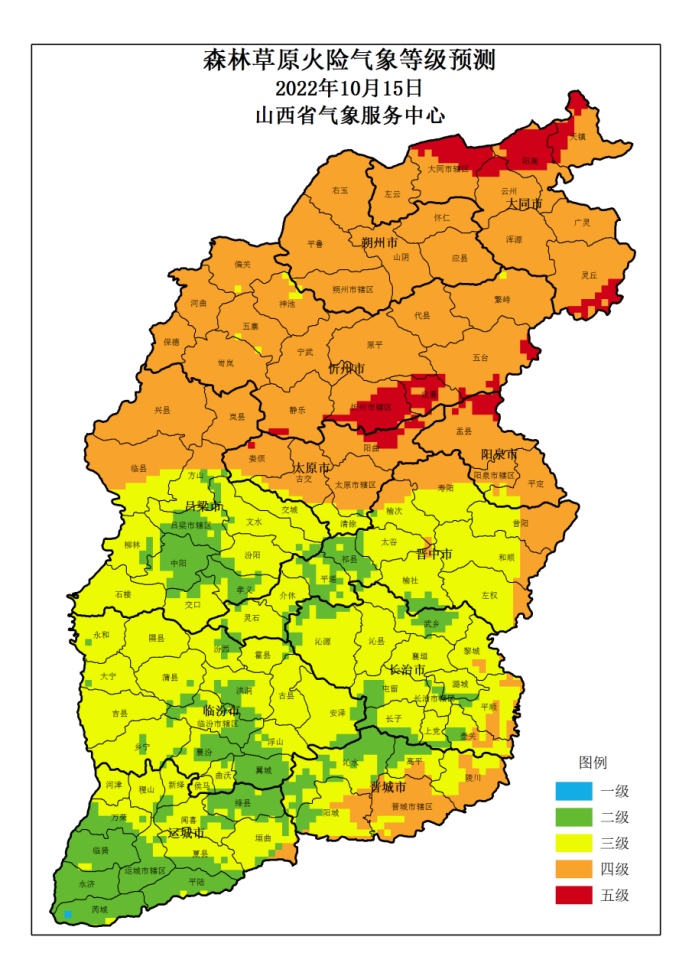 山西省 2022年10月15日森林草原火险气象等级预测图