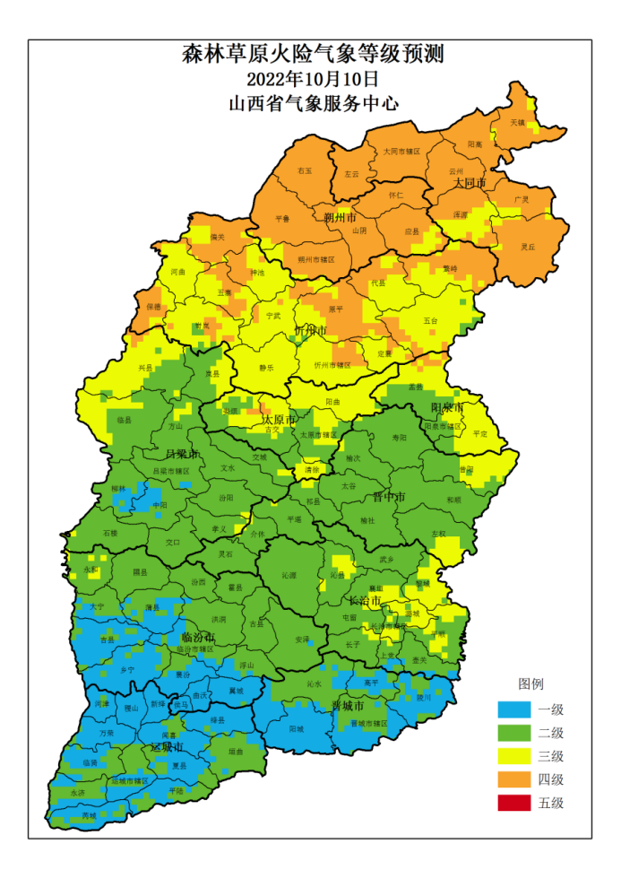 附: 山西省 2022年10月10日森林草原火险气象等级预测图