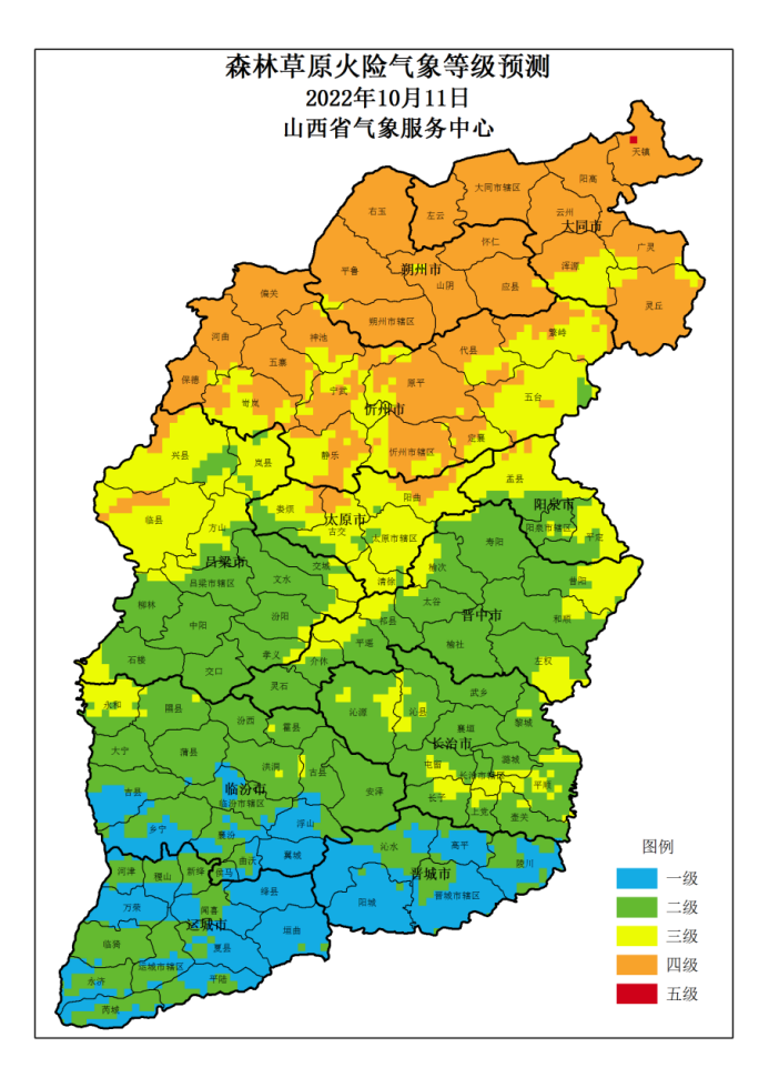 山西省 2022年10月11日森林草原火险气象等级预测图