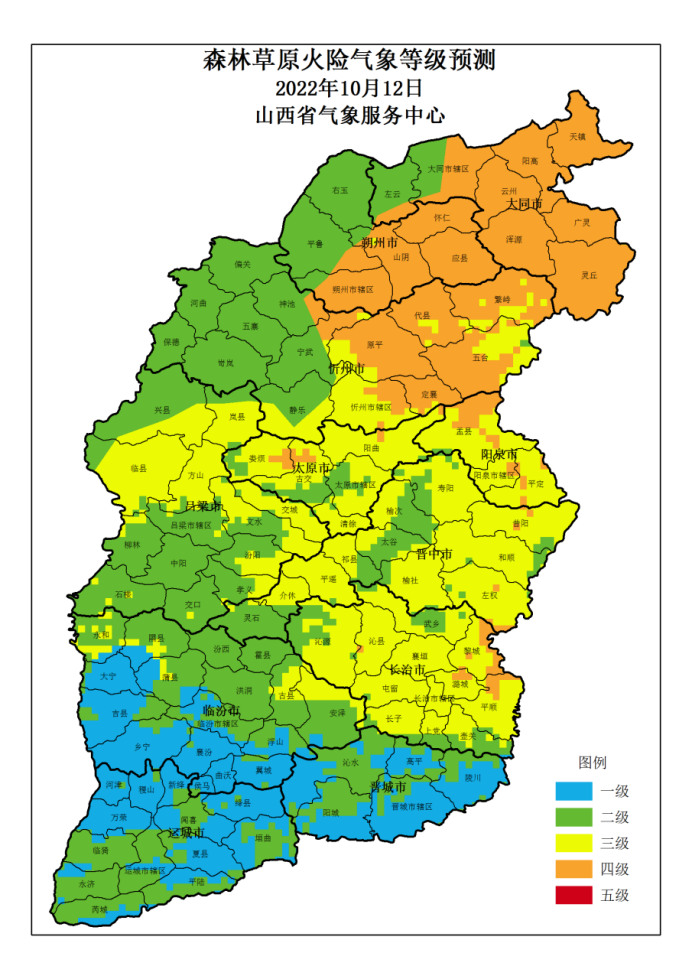 山西省 2022年10月12日森林草原火险气象等级预测图