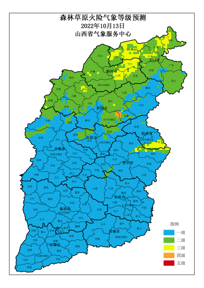 山西省 2022年10月13日森林草原火险气象等级预测图