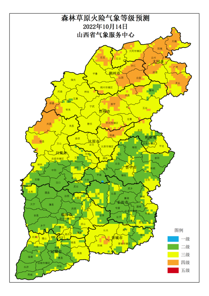山西省 2022年10月14日森林草原火险气象等级预测图