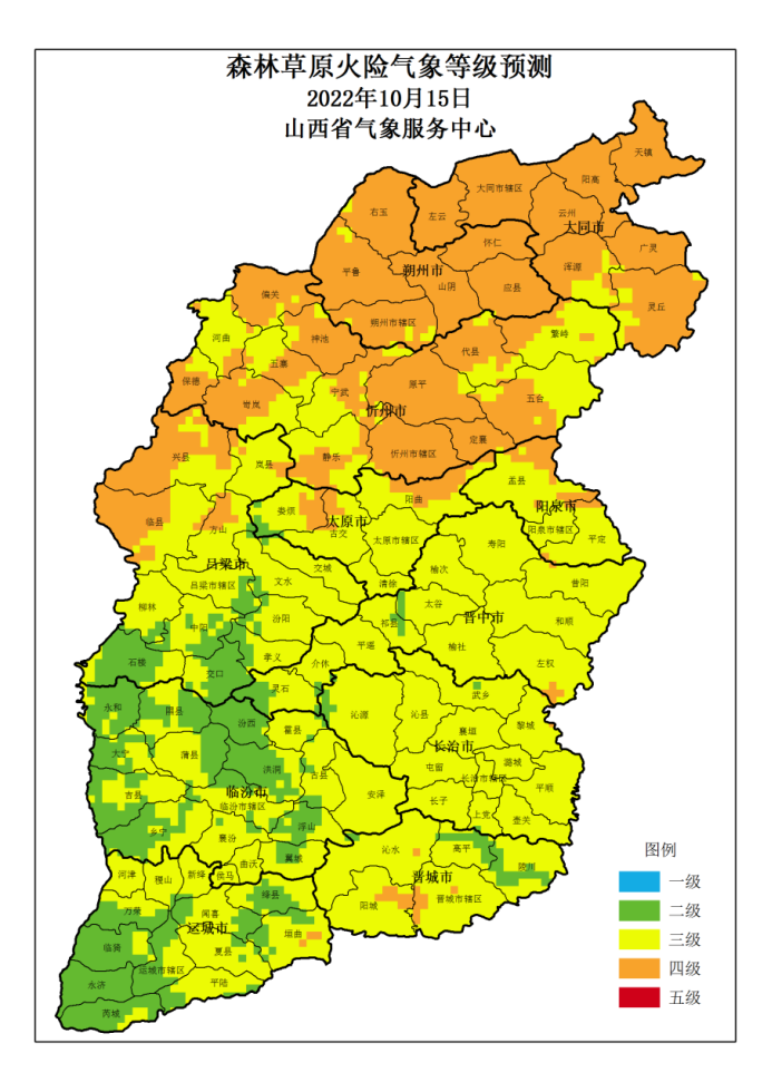 山西省 2022年10月15日森林草原火险气象等级预测图