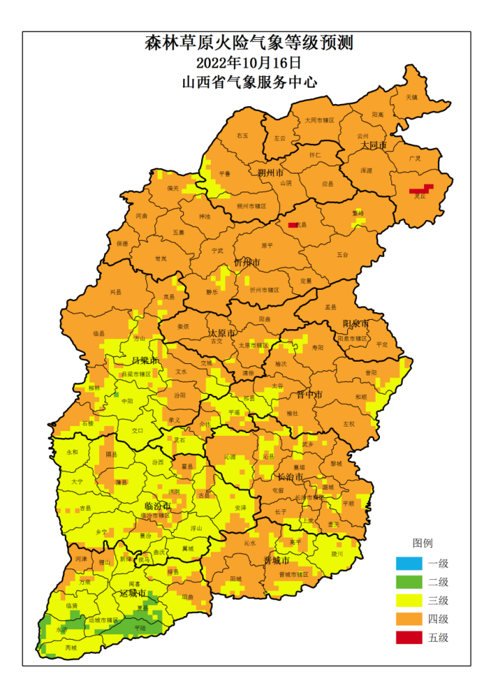 山西省 2022年10月16日森林草原火险气象等级预测图