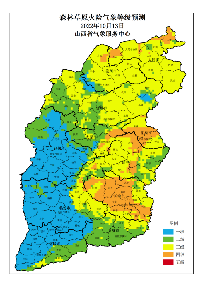 山西省 2022年10月13日森林草原火险气象等级预测图