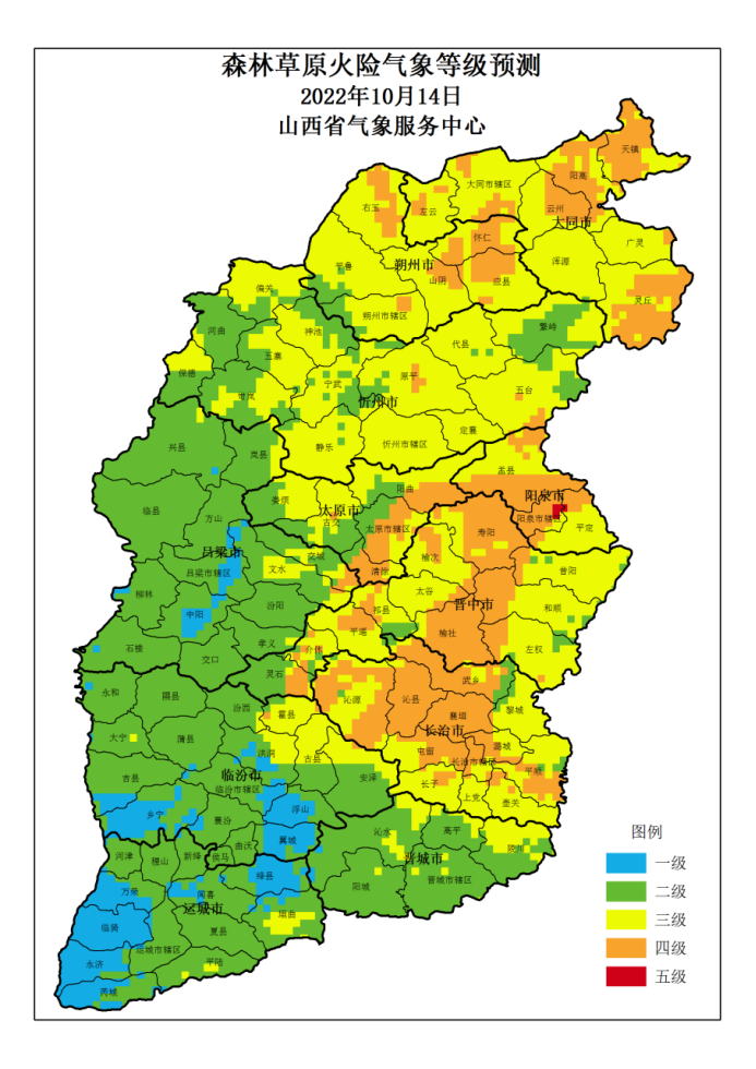 山西省 2022年10月14日森林草原火险气象等级预测图