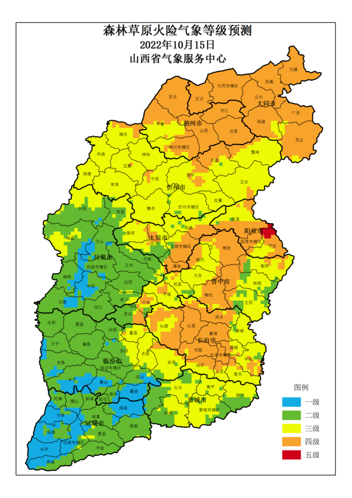 山西省 2022年10月15日森林草原火险气象等级预测图