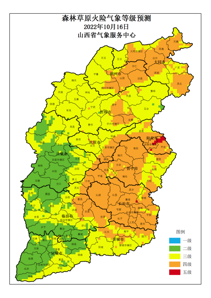 山西省 2022年10月16日森林草原火险气象等级预测图