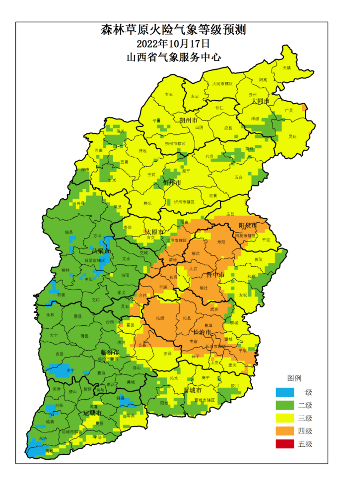 山西省 2022年10月17日森林草原火险气象等级预测图