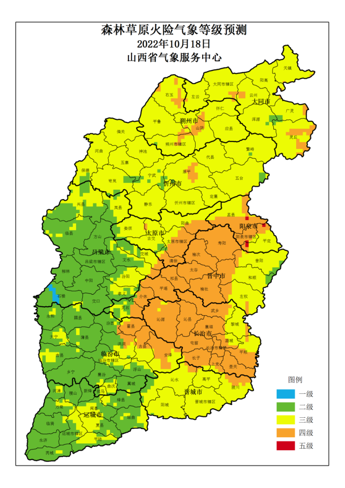 山西省 2022年10月18日森林草原火险气象等级预测图