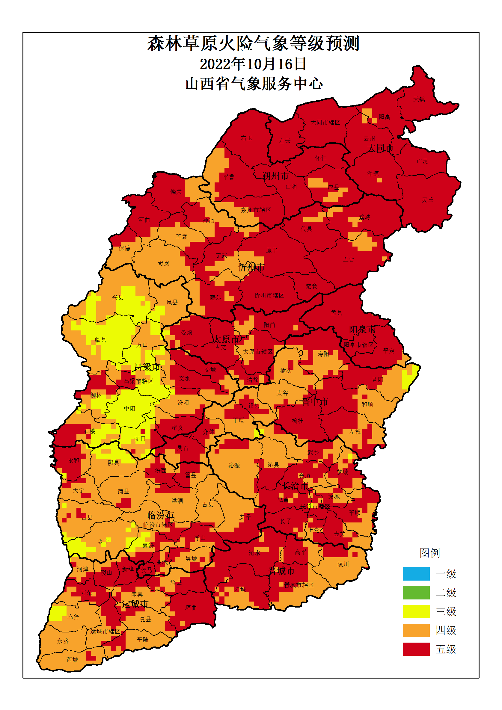 附: 山西省 2022年10月16日森林草原火险气象等级预测图