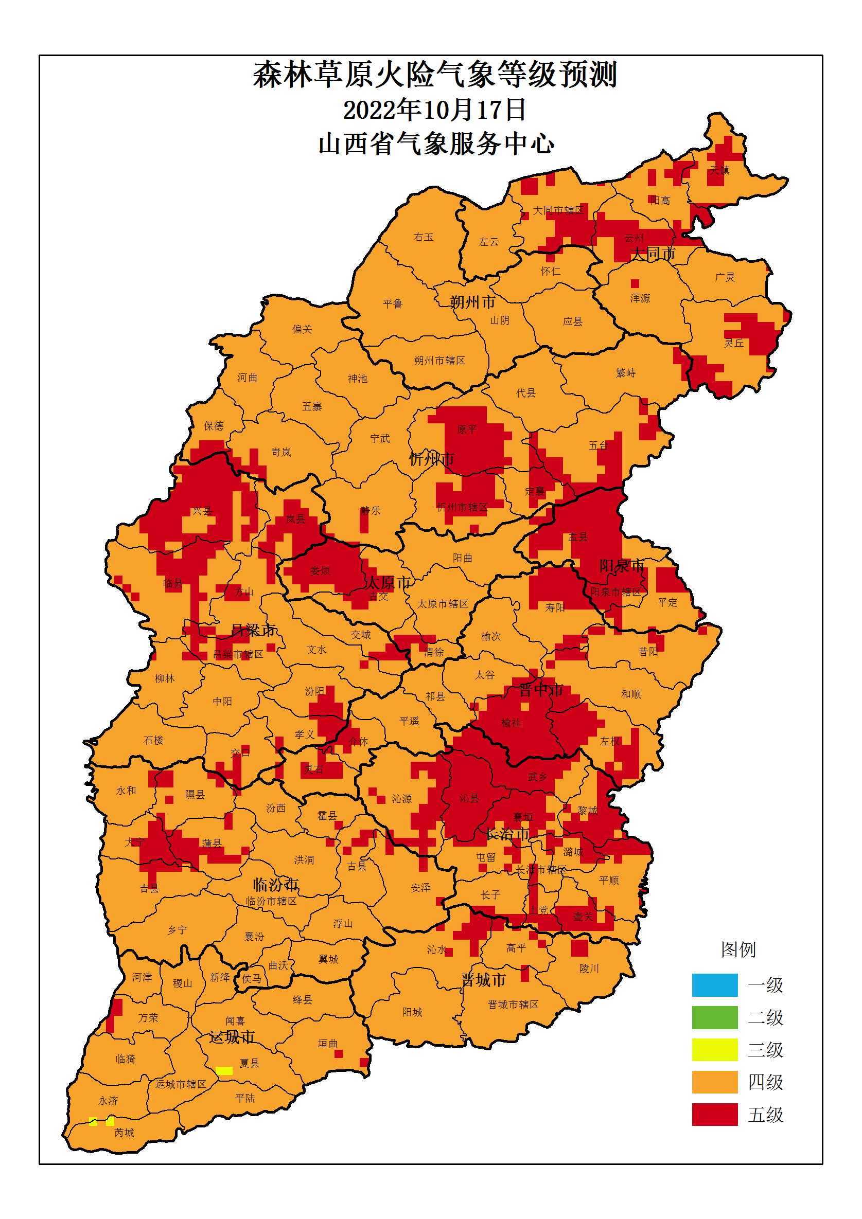 山西省 2022年10月17日森林草原火险气象等级预测图