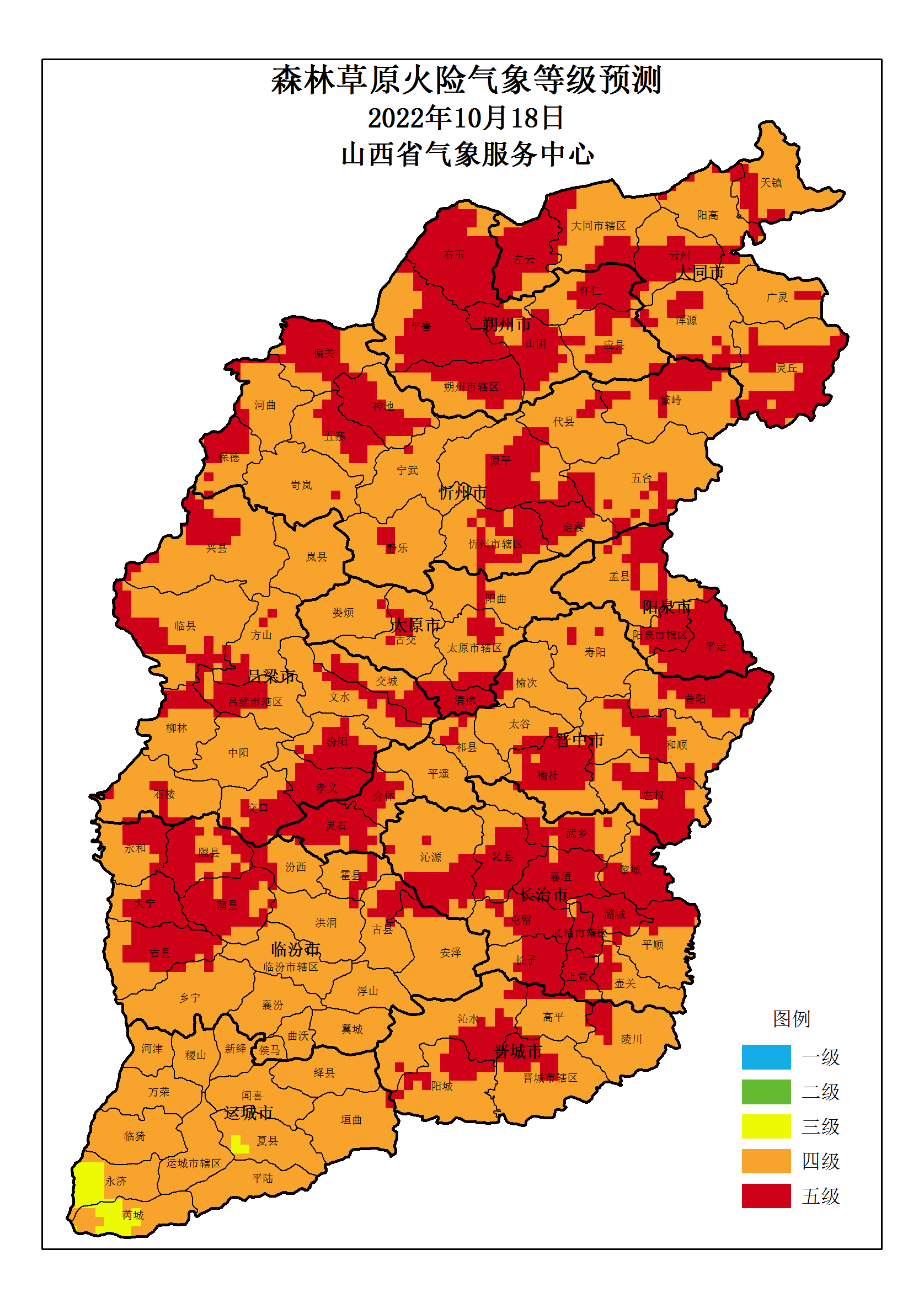 山西省 2022年10月18日森林草原火险气象等级预测图