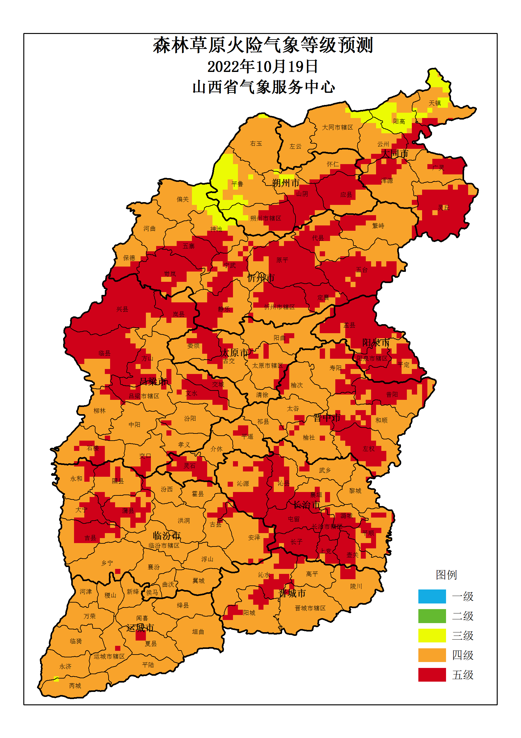山西省 2022年10月19日森林草原火险气象等级预测图