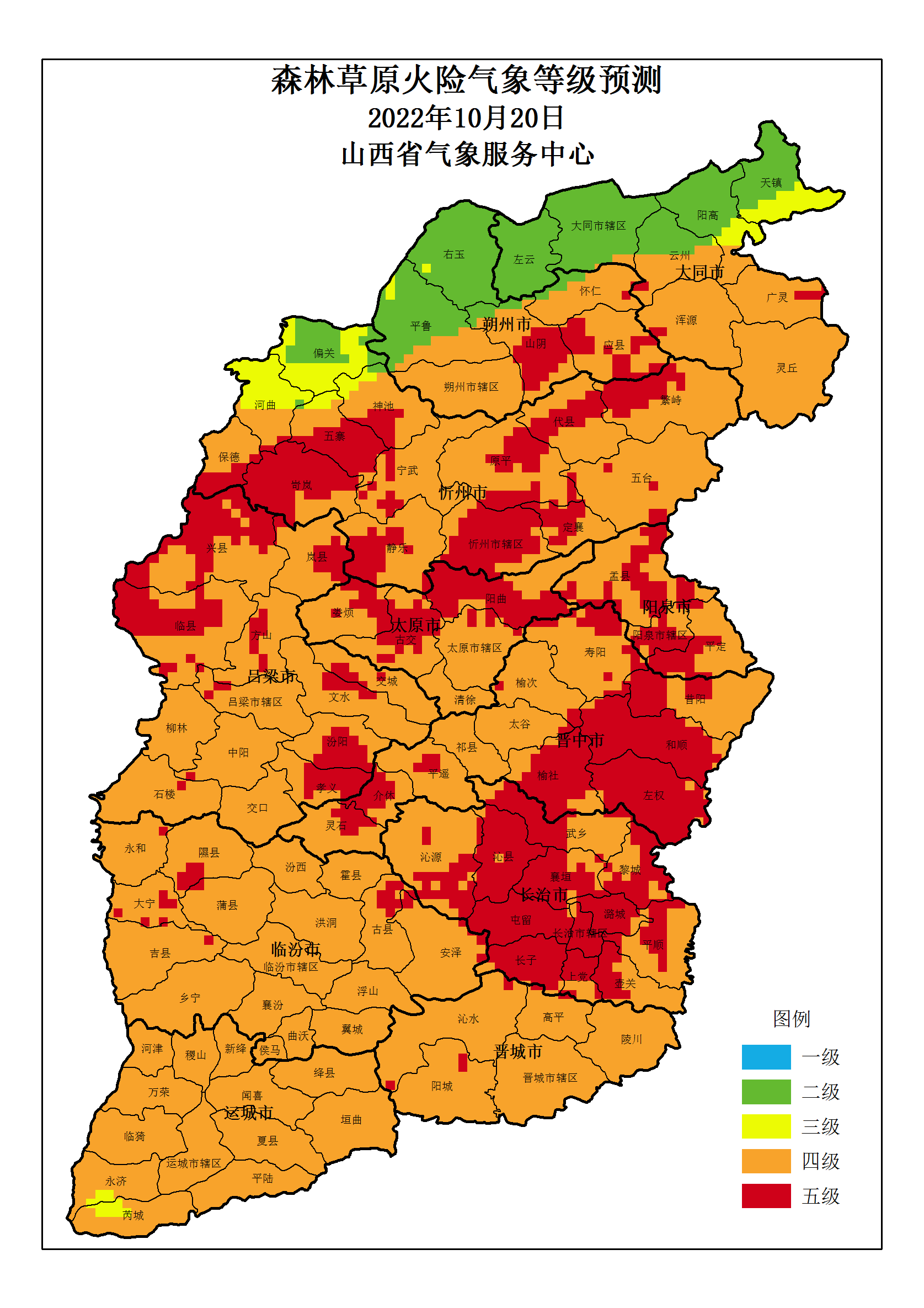 山西省 2022年10月20日森林草原火险气象等级预测图