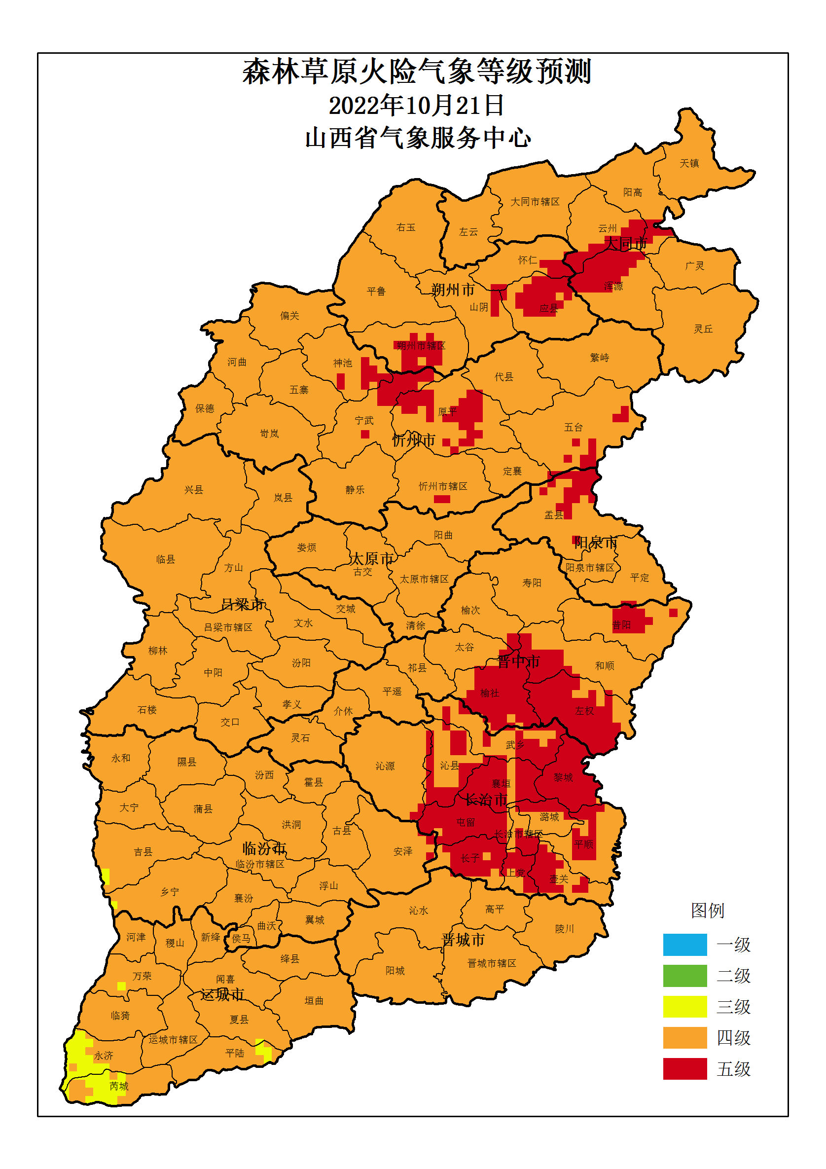 山西省 2022年10月21日森林草原火险气象等级预测图