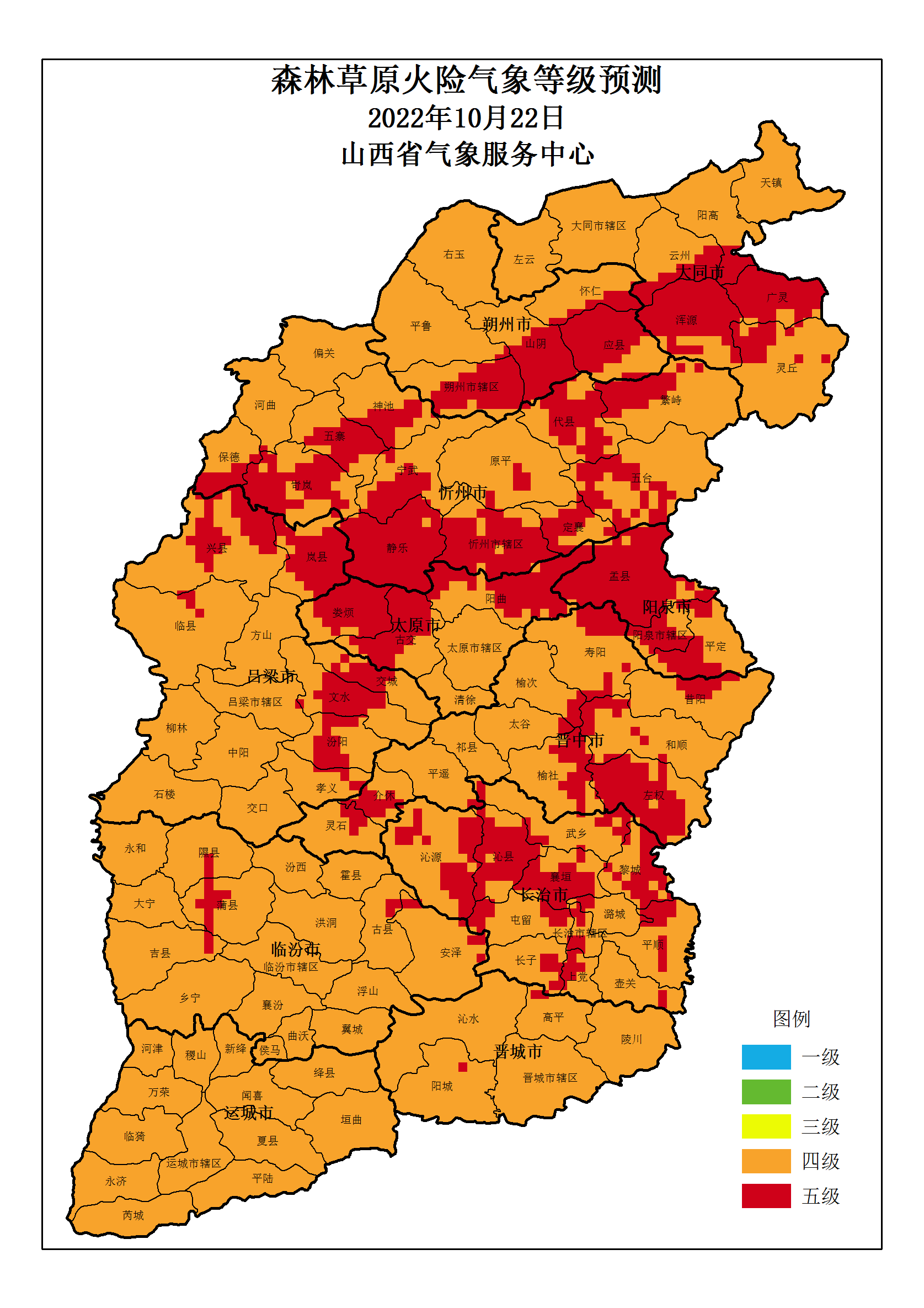 山西省 2022年10月22日森林草原火险气象等级预测图