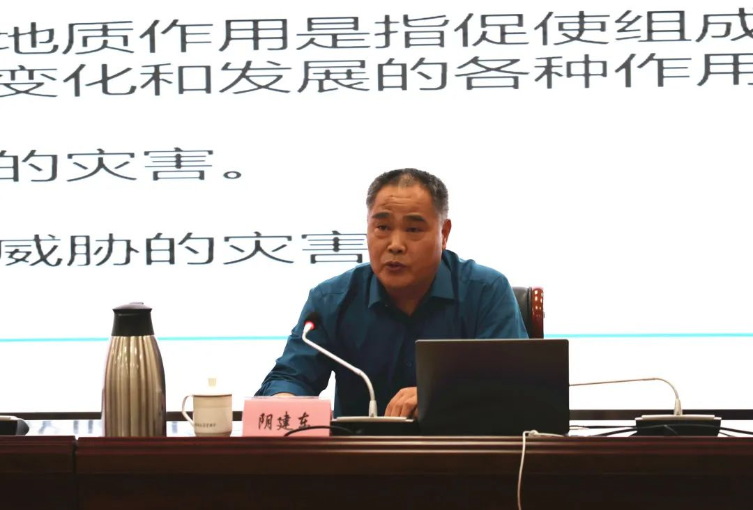 阴建东以《地质灾害防范与应对工作》为题,围绕地质灾害概念分类及全省地质灾害情况、地质灾害防治工作、地质灾害应急工作及救援组织等方面进行了全面讲解,通过大量历史地质灾害案例,深入分析了我省地质灾害基本情况,重点强调了如何做好地质灾害防治、应急处置等工作。